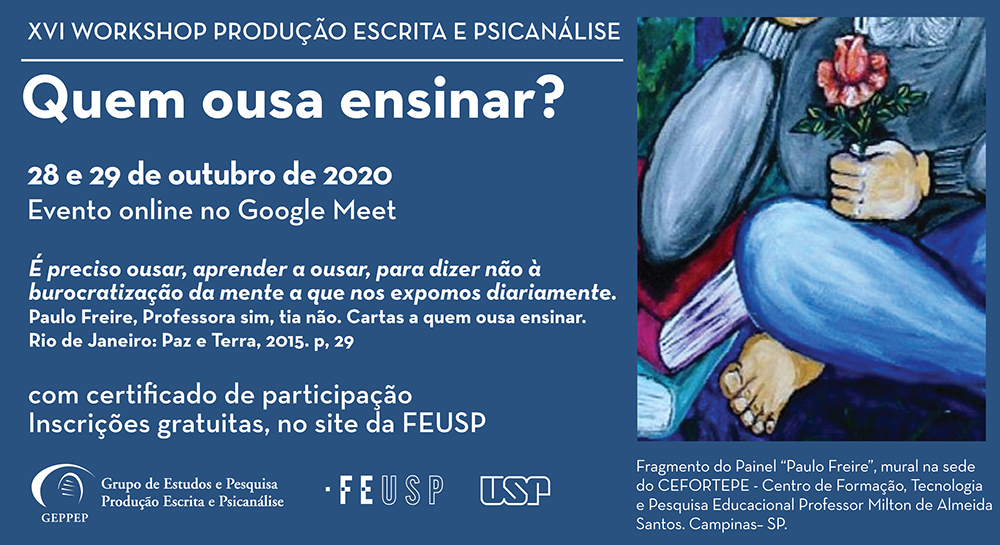 Por este motivo, na XVI Workshop Produção Escrita e Psicanálise: Quem ousa ensinar?, resolveram somar suas vozes à de Paulo Freire, produzindo cartas dirigidas a diferentes interlocutores, sempre inspiradas na discussão freireana.